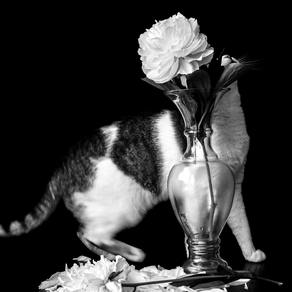 Mouillette était seule, à un an avec six petits à gérer elle n’était pas en bonne posture, cachée sous un buisson, elle rassurait sa progéniture apeurée. Hurlants à la mort pour avoir à manger, ils ne s’arrêtaient pas. Décidée à trouver à manger, elle sortit direction la boucherie. Personne en vue, elle sauta sur le comptoir avec toute la grâce d’un chat de 1 an. Elle saisit un morceau de boeuf et se prépara à partir quand soudain, elle se senti soulevée de terre, prise à la gorge et incapable de respirer. Le boucher, furieux de s’être fait voler une pièce de viande la jeta d’une telle violence au sol qu’un craquement sinistre retenti. Etourdie, Mouillette prit la fuite, dépitée de s’être laissée avoir à cause du fumet enivrant de la viande. Elle était presque arrivée lorsque soudain une pierre terriblement bien placée la neutralisa, évanouie Mouillette s’écrasa au sol, la dernière chose qu’elle vit, fut une bande d’enfant armés de pierre, se préparant à les lancer… Mouillette se réveilla endolorie sous la pluie. En boitant, elle rentra voir ses petits, en passant elle vit sa pièce de viande piétinée et consommée par la moisissure, désormais impossible à manger. Arrivée elle s’effondra sans prendre compte des miaulements stridents des chatons. Quand elle se réveilla, une lumière aveuglante l’éblouie, elle était allongée, sur un gros oreiller, ses blessures pansées et traitées.